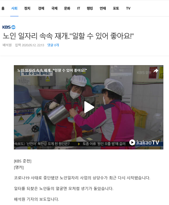 2020년 코로나-19로 중지 되었던 노인일자리 속속 재개