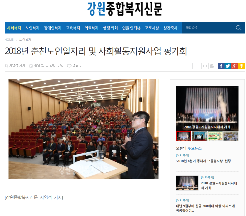 2018년 노인일자리 및 사회활동지원사업 평가회(강원종합복지신문)