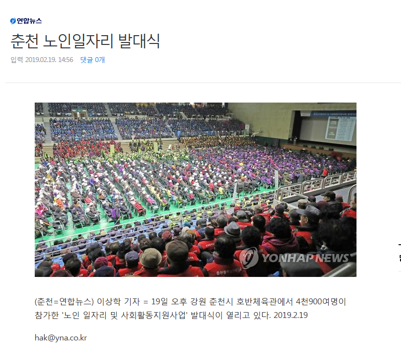 2019년 춘천시 노인일자리 및 사회활동지원사업 발대식(연합뉴스)
