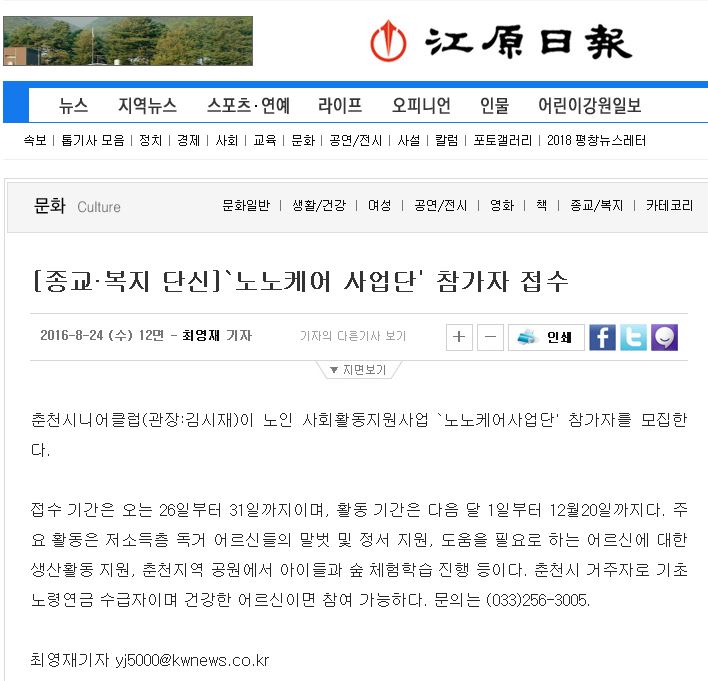 (강원일보)노노케어사업단 참가자접수