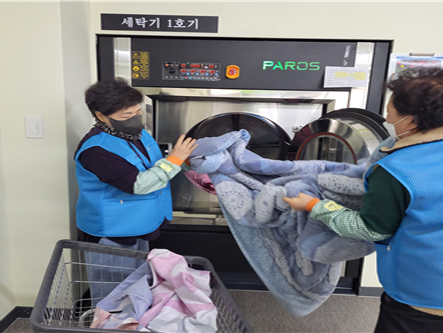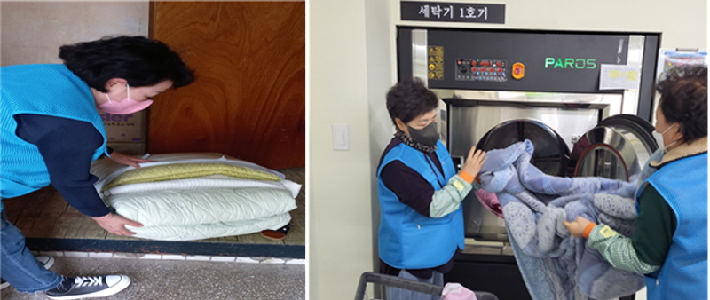 봄봄 사랑나눔 빨래방 참여 어르신들이 직접 65세 이상 취약계층, 장애인가정의 세탁물(이불,운동화)을 수거, 세탁, 건조, 배송