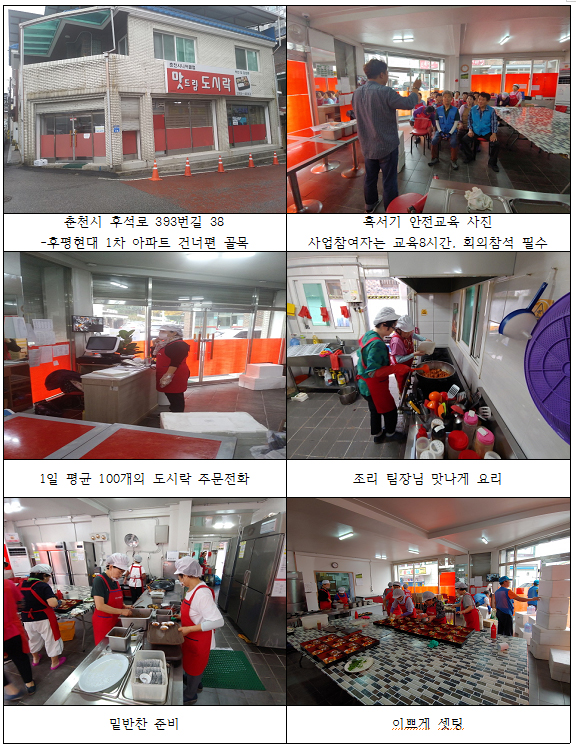 어르신들의 손맛을 이용하여 바쁜 현대인들에게 웰 빙 식단의 도시락을 집 밥처럼 어느 곳에서든 먹을 수 있도록 만들어 배달